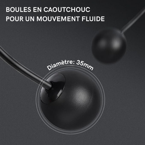 - Balles lestées haute précision: reproduisent la sensation naturelle de rotation d’une corde classique, tout en engageant pleinement le haut du corps.
